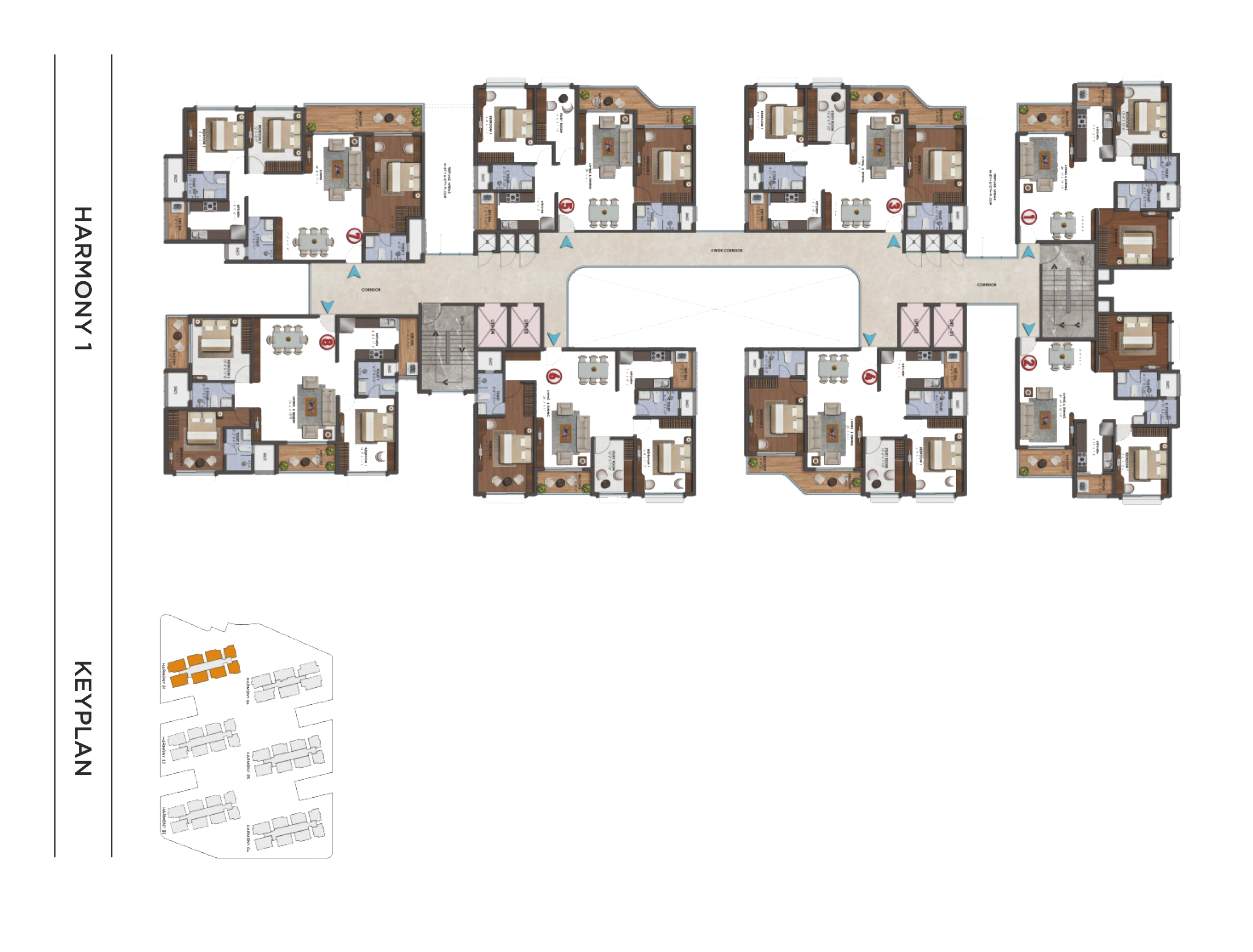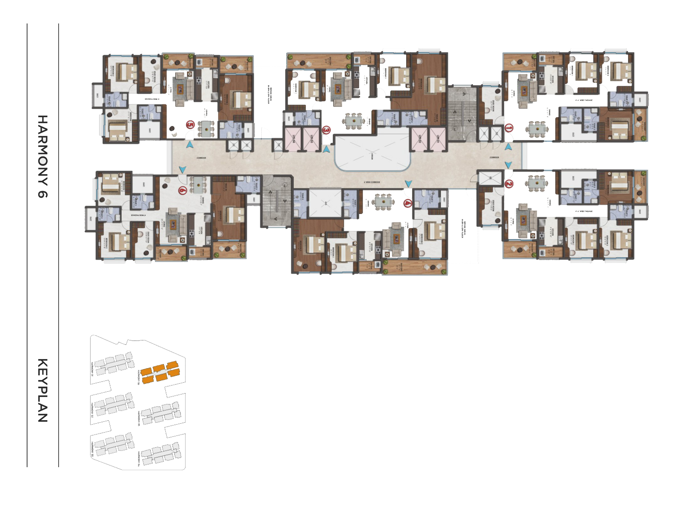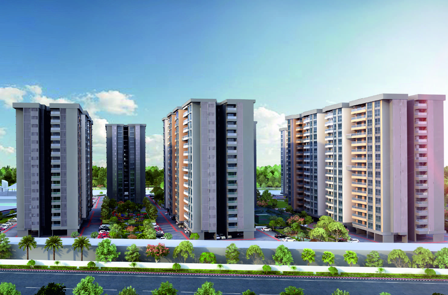 The Harmony towers are designed with ample natural ventilation with open area on 3 sides and all along with central space dedicated to more features like clubhouse, Leisure Park (Miyawaki Forest), Party Lawn with deck, Box Cricket Pitch etc.